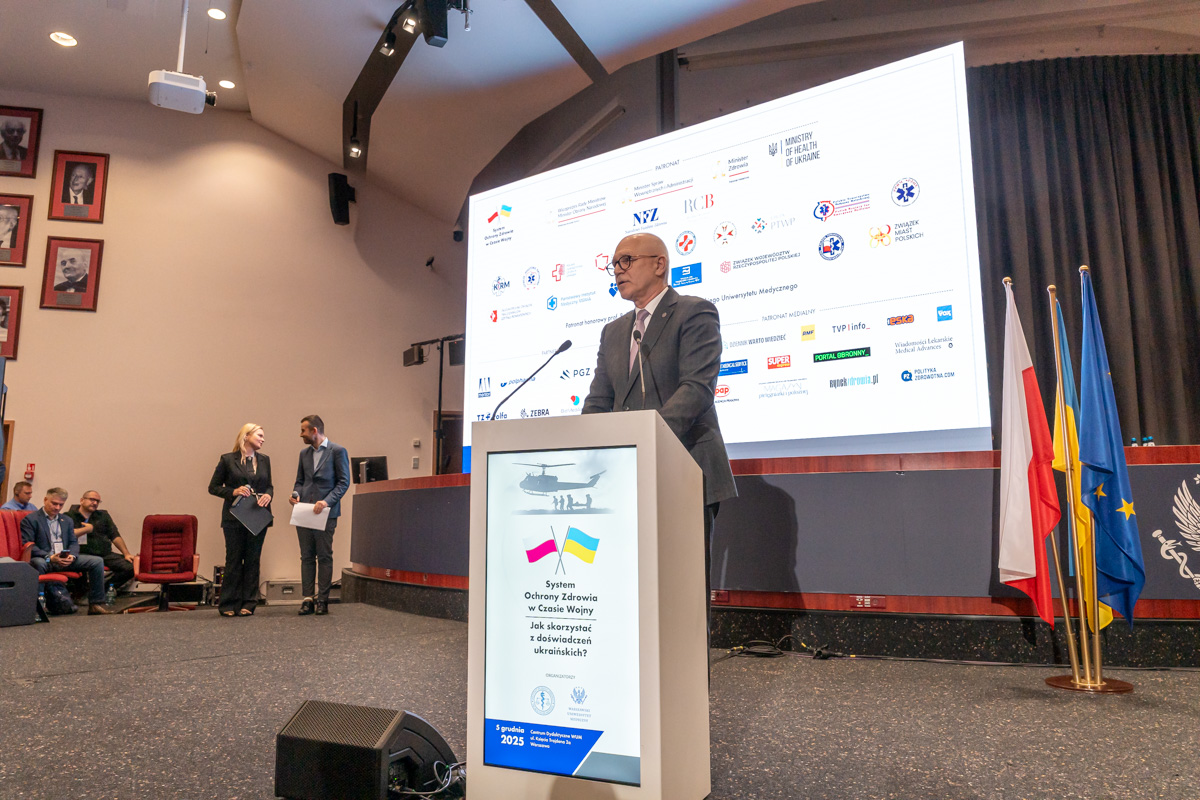 Wystąpienie główne dotyczące zarządzania systemem ochrony zdrowia w czasie wojny przedstawił wspomniany Minister Zdrowia Ukrainy.